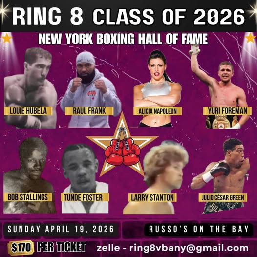 The New York State Boxing Hall of Fame has announced the class of 2026, and the event takes place on April 19, 2026, at Russo’s on the Bay.